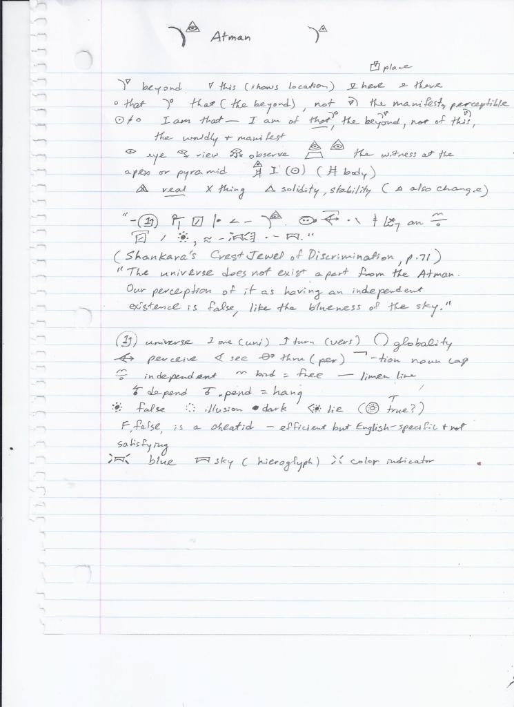 A quote from Shankara’s Crest Jewel of Discrimination. Someone asked me once if I could make ideograms for abstract ideas. I thought it was a funny question. Is the pope catholic? Yes, I represent abstract ideas with these visual concepts better than can be done with ordinary linguistic conceptualization.