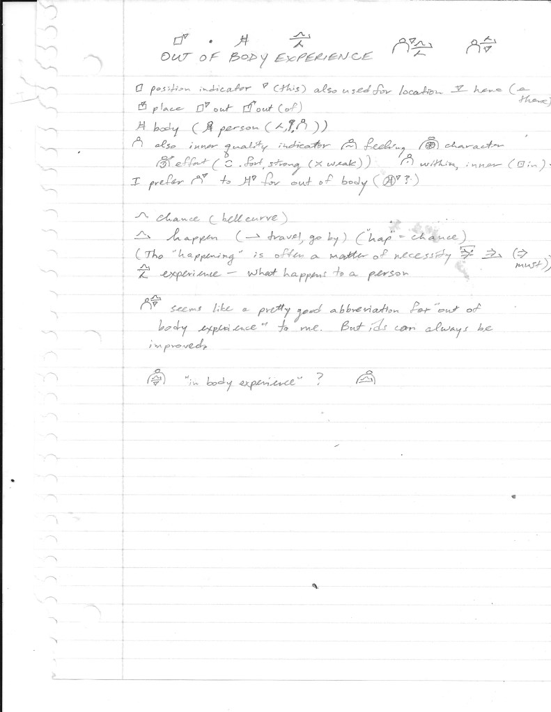 someone asked me for ids for “out of body experience” and “in body experience”. I don’t know what is meant by latter though.