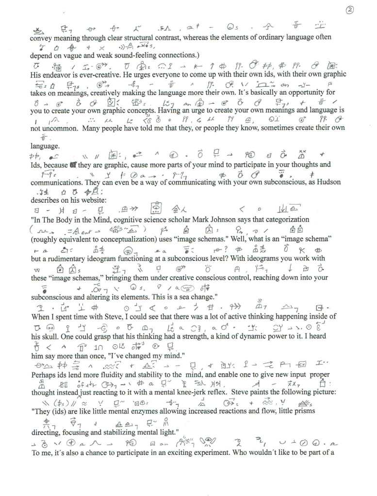 Author Christophe Weigert has a chapter on my ideograms in his forthcoming book, The Power of Imagination. Below is a transcription. I took the liberty of editing a bit. One thing I would add is that automating the generation and use of these ideograms into my psche has constituted a profound change.