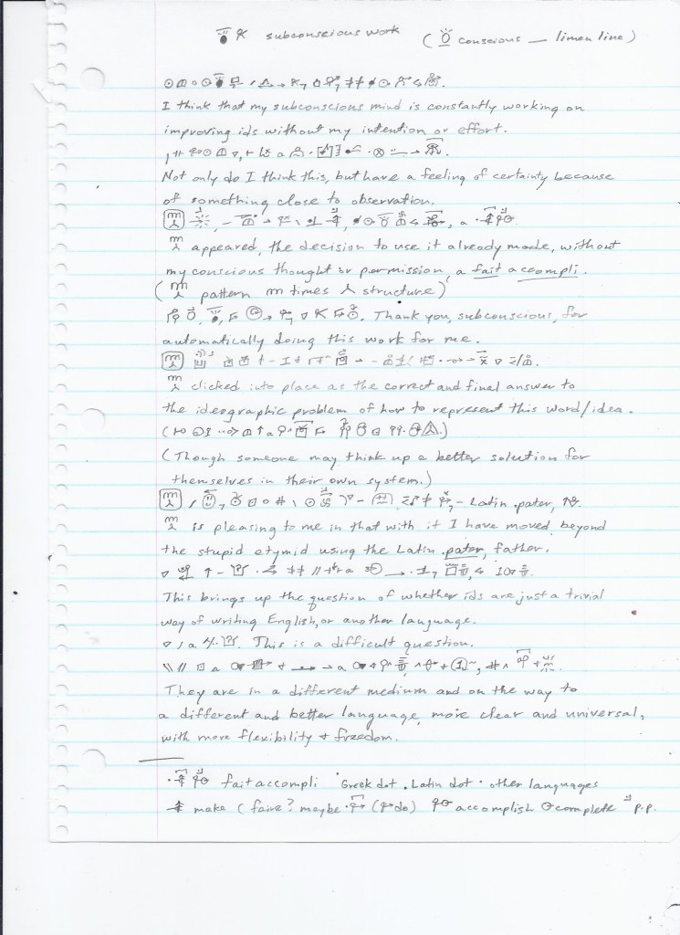 Afterthoughts: on the other hand, I have poured a tremendous amount of conscious effort and work into making these ideograms; the short answer as to whether ids are a new language is “no, but they offer a huge possibility for change and move in that direction”