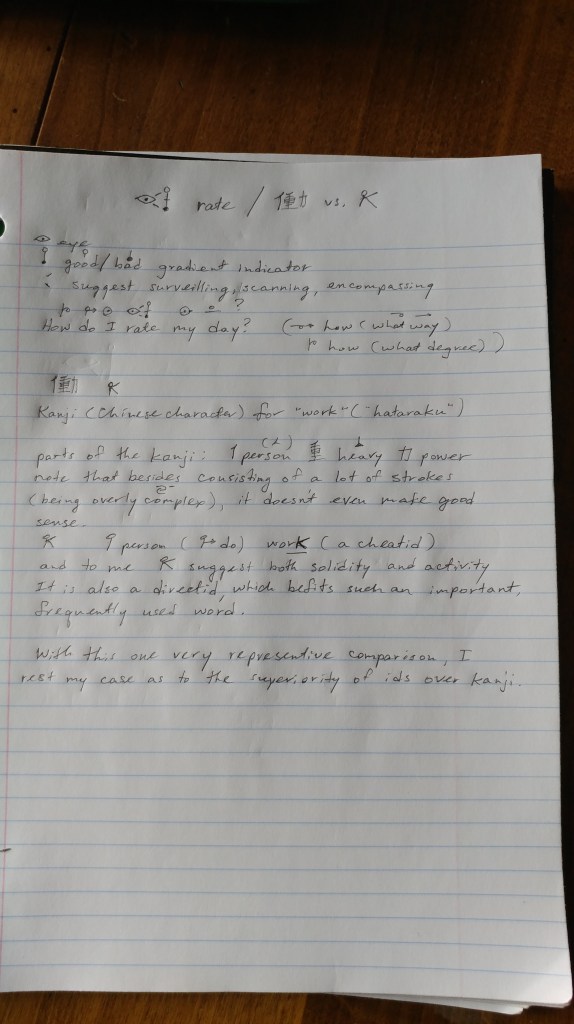 A new id for “rate” and the striking and typical comparison of the kanji vs. the id for “work”